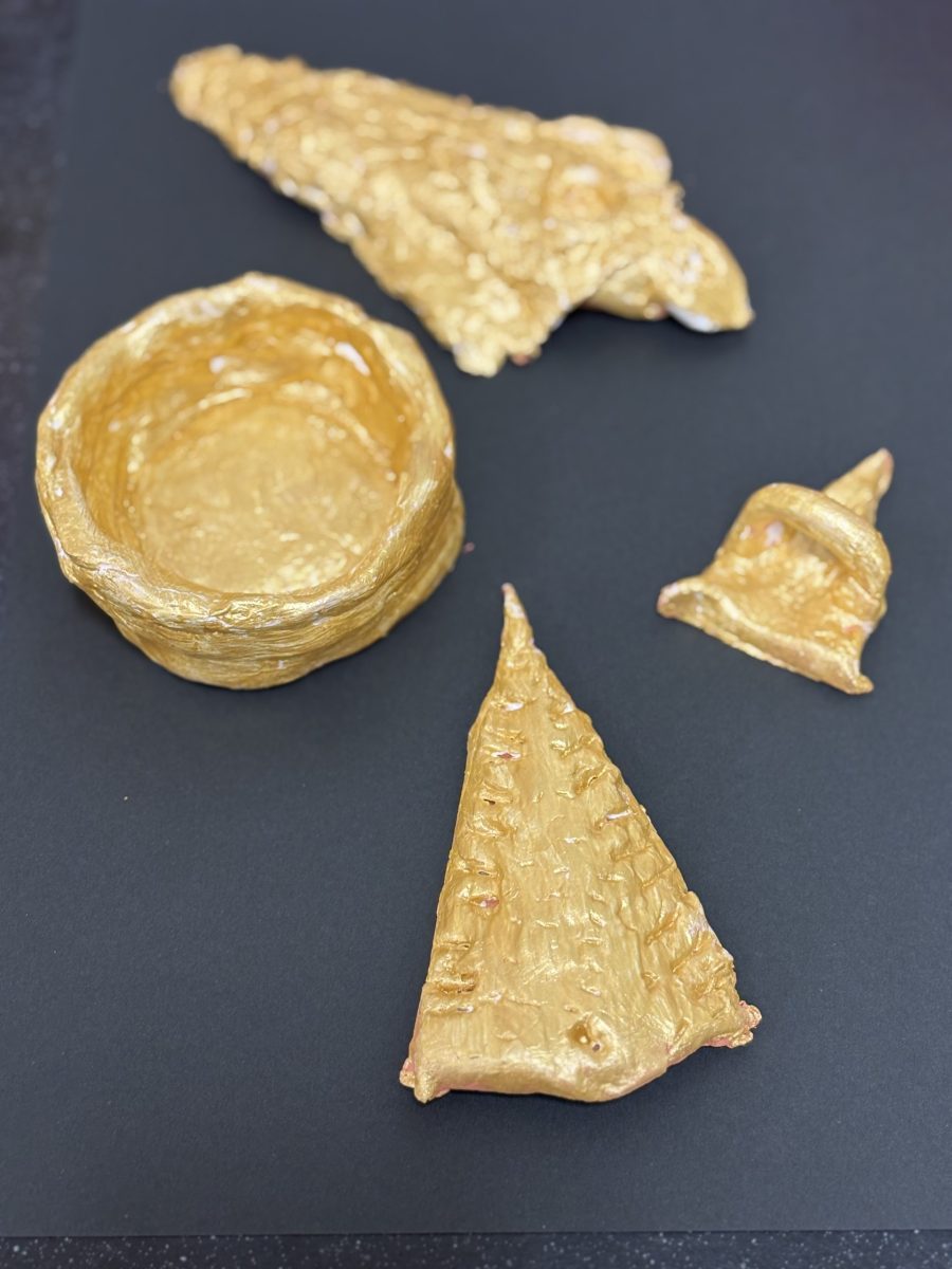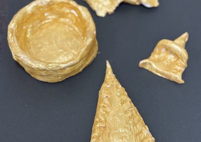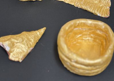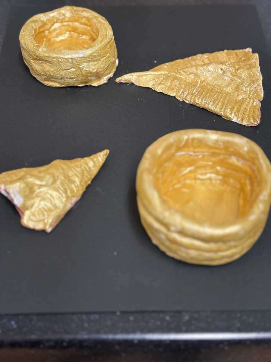 Recently 5th class studied the Bronze Age. During our art lessons we used clay to make some Bronze Age coil pots and spearheads. We used a technique called Score & Slip.
