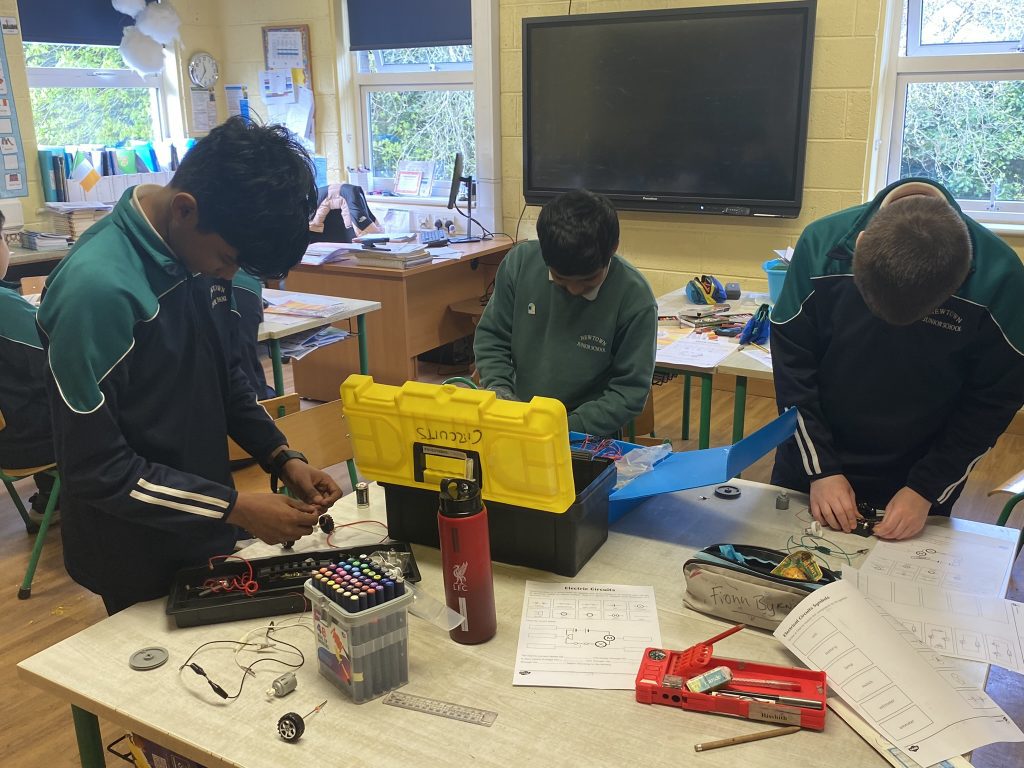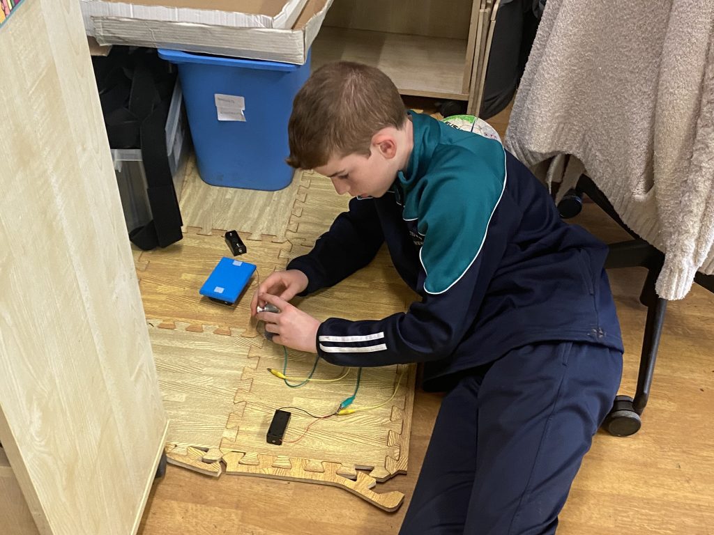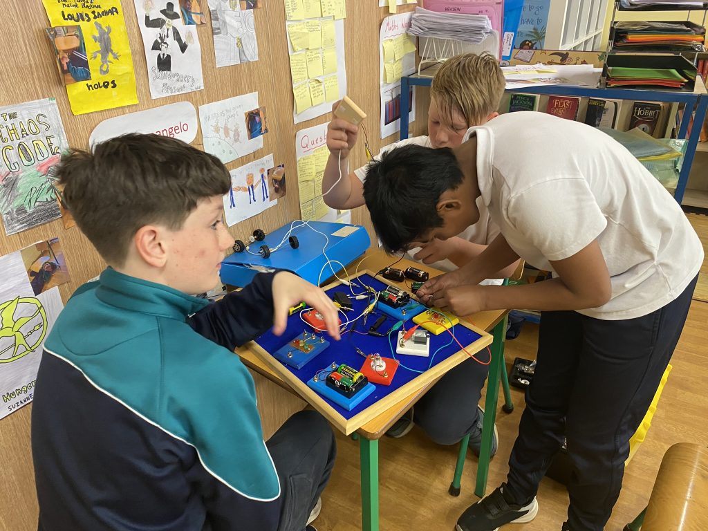 Sixth class investigated and experimentedwith electrical circuits using batteries (cells), bulbs, wires, motors and switches.  They also recorded and communicated results using some basic electrical symbols.