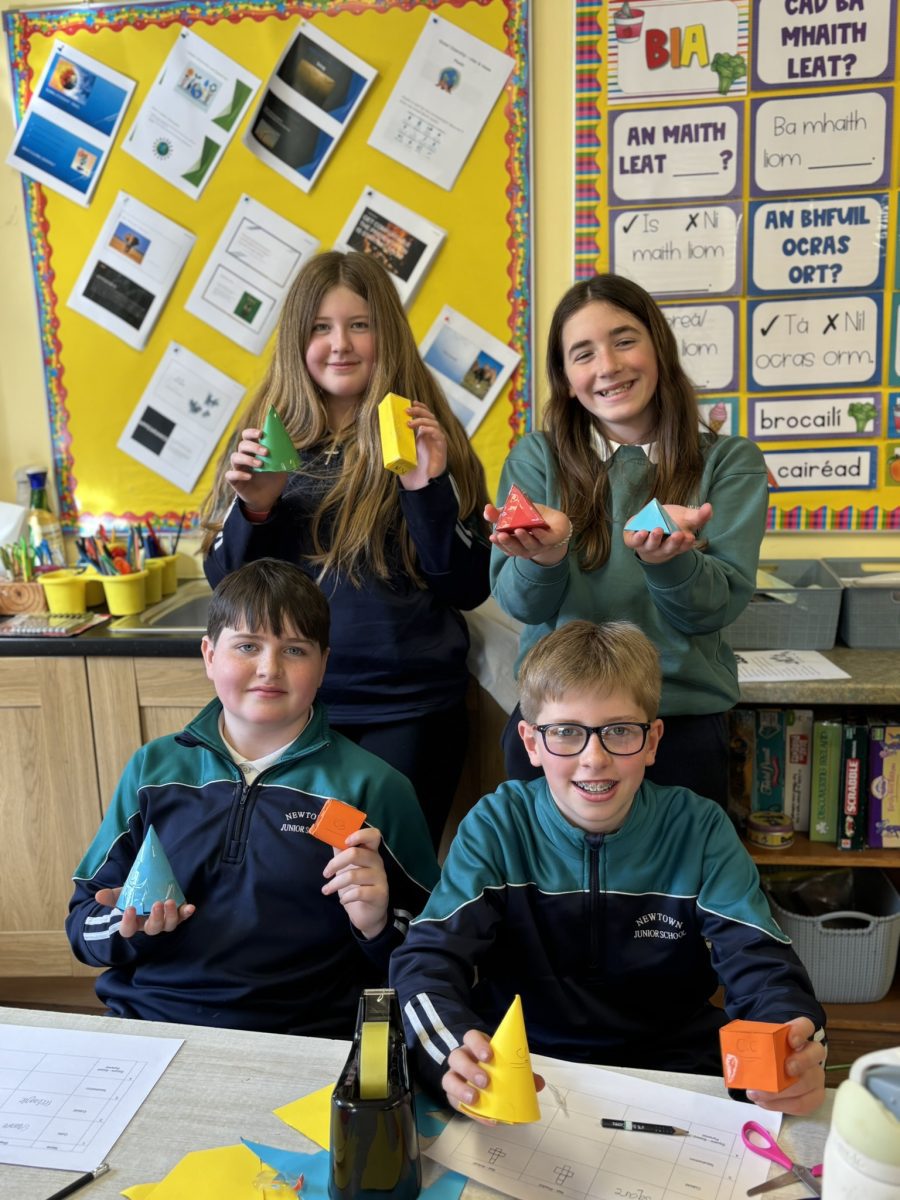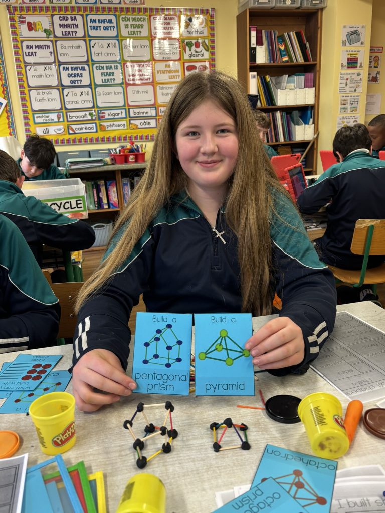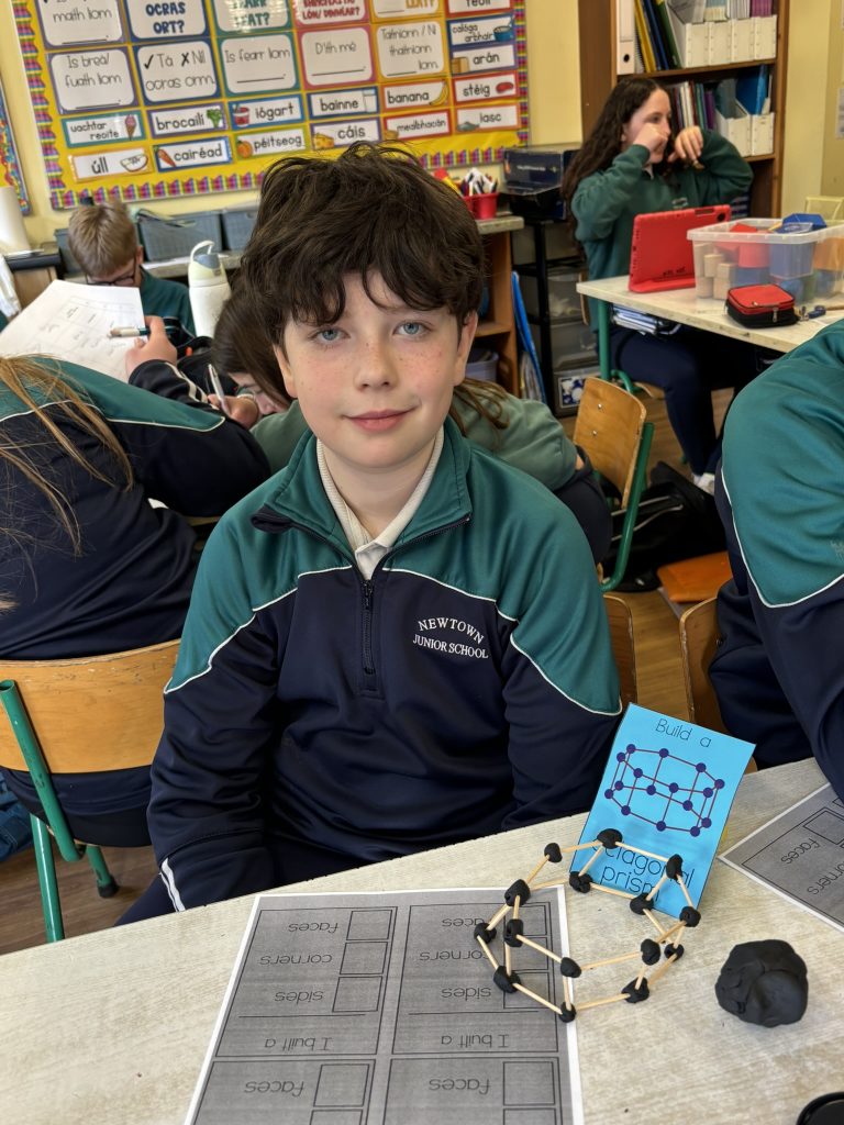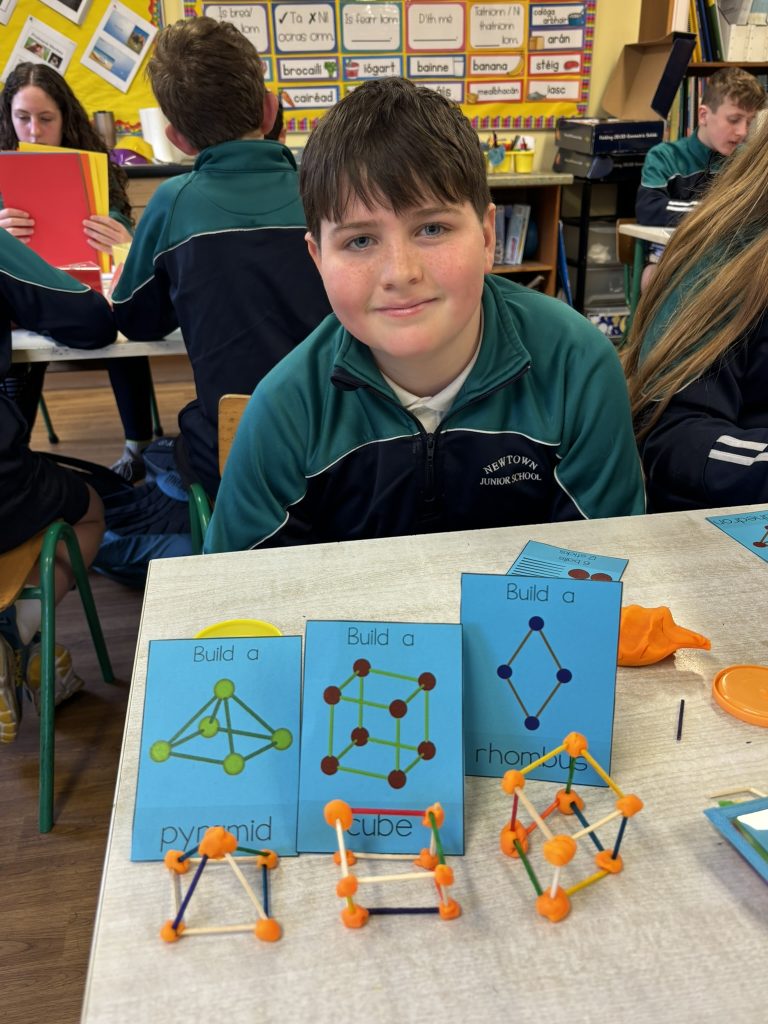 Last week in Sixth Class, our classroom transformed into a busy 3D Maths Investigation Hub as the children rotated through a series of hands-on maths stations exploring the properties and construction of three-dimensional shapes.