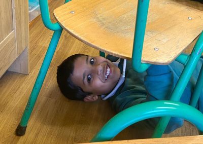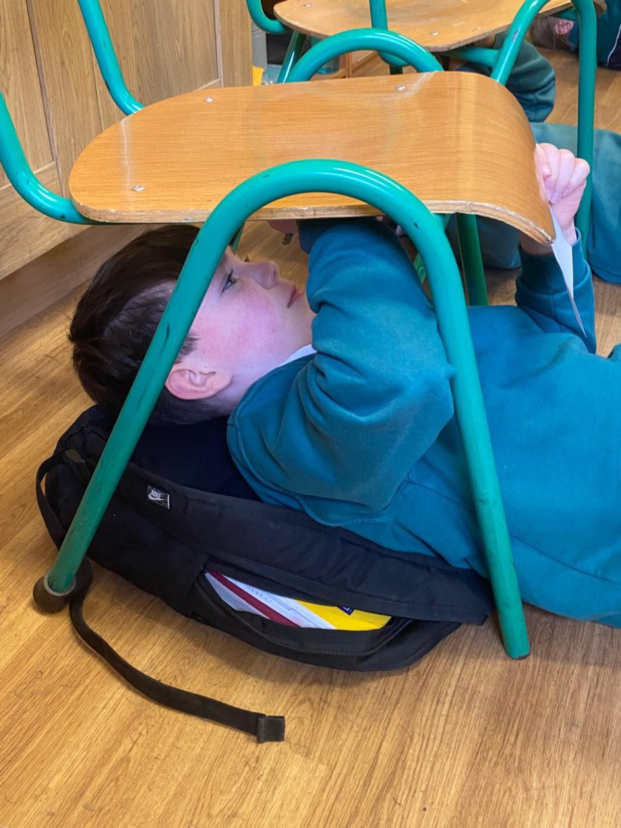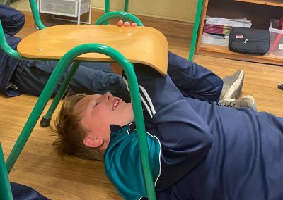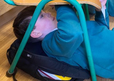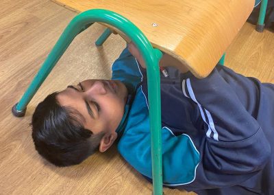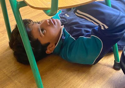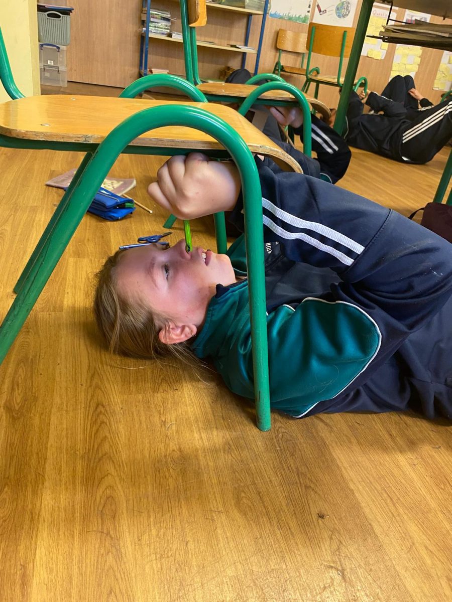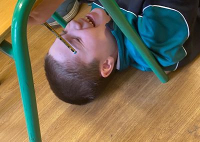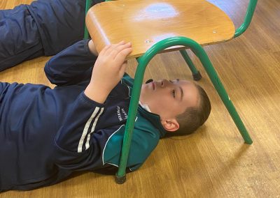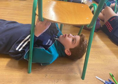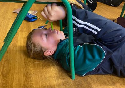 Michelangelo painted images depicting stories from the book of Genesis, in the Bible, on the ceiling of the Sistine Chapel. He lay down or stood on scaffolding, painting with his hands above his head. Today we re-enacted the painting of the ceiling of the Sistine Chapel. The children chose their favourite book and drew an image depicting the story. They stuck a sheet of paper underneath their desk and lying on the ground, they drew their picture on the paper. The process was tiresome but the finished products were quite impressive!