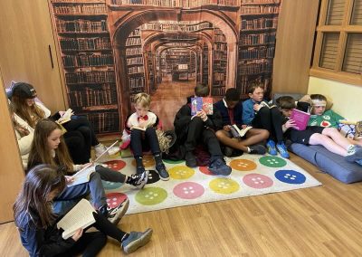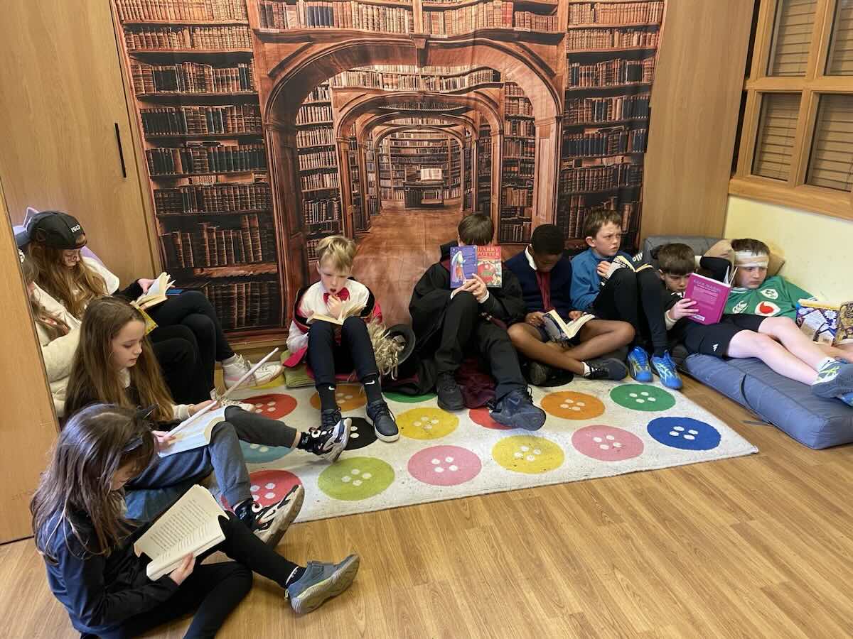We had an organised read in this morning when everyone picked a spot in the school, took their cushion and enjoyed some silent reading time.